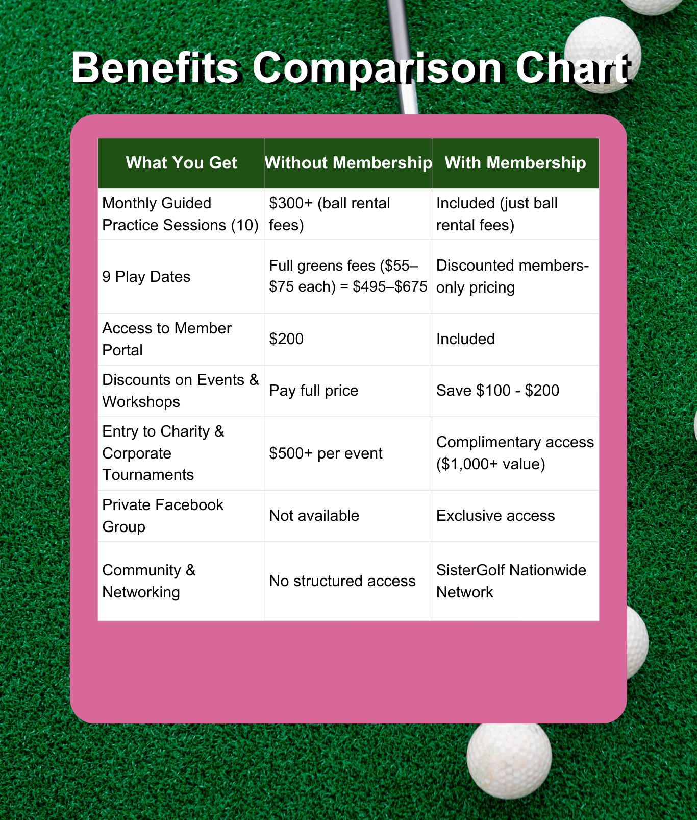 Total Value Without Membership: $2,500+